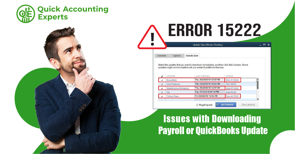 QuickBooks Error 15222 typically occurs when there are issues with downloading payroll or QuickBooks updates. It may also arise due to incorrect settings in Internet Explorer or problems with digital signatures.
